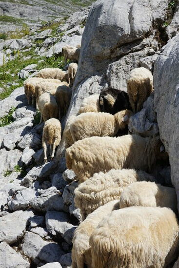 Erst gegen 16.30 Uhr sind die beiden zurück. Ich habe in der Zwischenzeit gelesen und den Schäfer mit seinen Schafen auf den Montenegrischen Seite beobachtet.