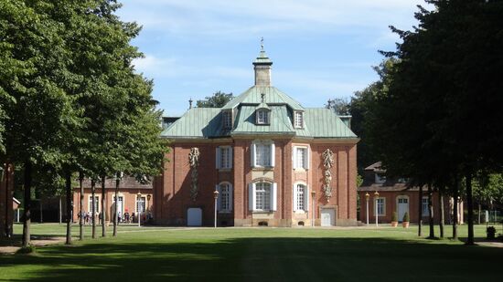 Das Schloss ist die einzige noch erhaltene Alleesternanlage weltweit. Acht Lindenalleen führen zum Schloss im Zentrum, acht Pavillons sowie ein noch heute aktives Kapuzinerkloster umringen das prunkvolle Barockschloss. Aus den Fenstern des im Zentrum stehenden Hauptgebäudes, hat man freien Blick in die Alleen, von den 8 Pavillons ist nichts zu sehen. Das Gelände eignet sich hervorragend zur Parforcejagd, einer Hatz mit vielen Hunden und Reitern auf das Rot- oder Schwarzwild, die Freiflächen nutzten die Jäger zum schneller reiten, ohne auf Bäume oder andere Hindernisse Rücksicht nehmen zu müssen. Den finalen Todesstoss auf den zur Jagd freigegebenen Hirsch machte der Kurfürst mit dem Hirschtöter selbst, das Schwarzwild war den niederen Adeligen vorbehalten.