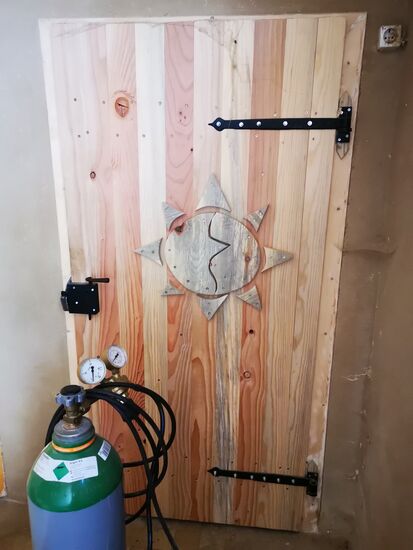 Und auch mit Holz weiß Christoph kreativ und gut umzugehen.. solche Türen habe ich bisher nur im Baumhaushotel im Kriebelland gesehen.