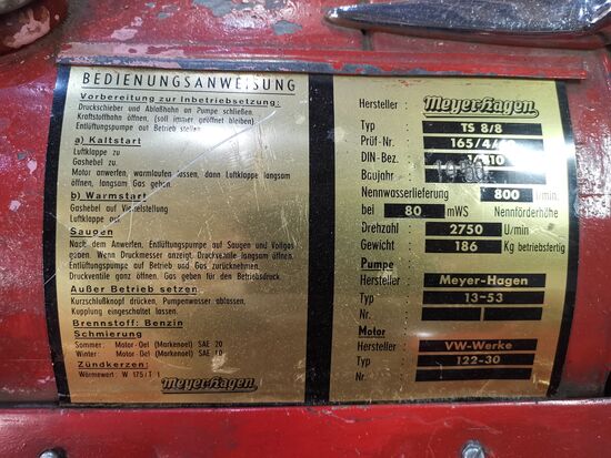 Tragkraftspritze BJ 1984 mit VW-Industriemotor 34 PS