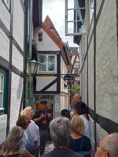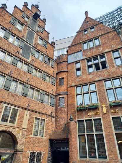 Nach dem Tee geht's in die Böttcher Straße. Diese Straße wurde rein aus Marketing Gründen erbaut und ist nicht so historisch wie sie aussieht. Der Kaufmann der u.a. den Kaffee Hag entwickelt hat, hat dieser Straße ihr Aussehen gegeben.