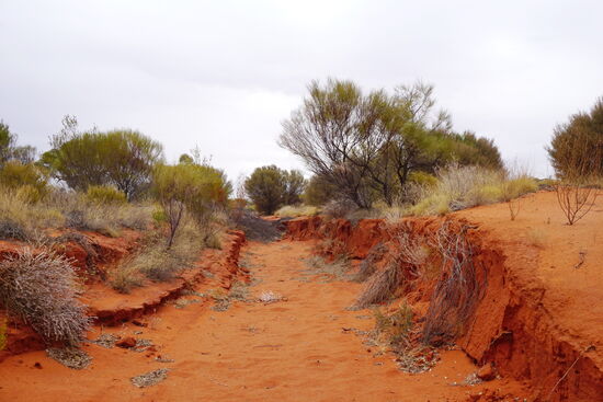 Wenn man nicht rechtzeitig die immer wiederkehrenden Nebenwege (das sind Umwege, die durch Fahrer entstanden sind, die von den Rippen des alten Weges schon genervt waren) nutzt, kann man durchaus mal in eine ausgewaschene Sackgasse, wie im Bild unten, gelangen.