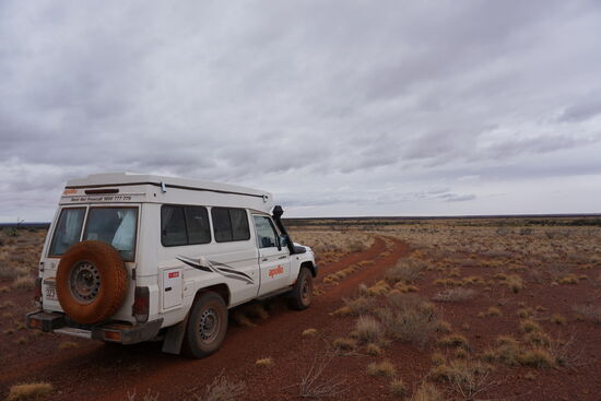 Für die nächste Nacht suchen wir uns wieder einen Platz gleich neben dem Weg, es ist die vierte Nacht hintereinander im Outback ohne Duschen, wir stinken nur ein bisschen. Scherz Mit Katzenwäsche geht’s auch ganz gut.