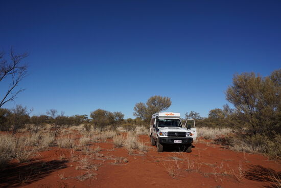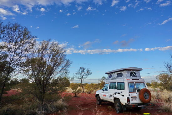 Bis Yulara, das ist schon ganz in der Nähe vom Uluru oder Ayers Rock, wie man diesen Riesenmonolithen nennt, sind es immerhin nochmal ca. 200 km auf Piste. Wir versuchen dort morgen wenigstens ein „Ticket“ fürs Duschen und Wäschewaschen zu bekommen.