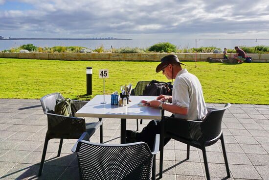 Heute haben wir uns vorgenommen, nochmal im Delphin Center zu frühstücken und dabei hoffentlich Delphine zu sichten. Nahmen uns kurz nach 8:00 Uhr wieder ein Great Brekkie mit Tee (sehr lecker), die Delphin-Sichtung war leider wieder mau. Dafür gab es einen 6er.