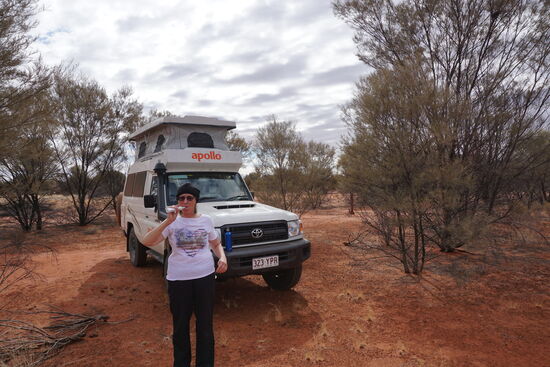 Robert war ja nach diesem seltsamen Essen im Kulgera Roadhouse gleich irgendwie bisschen komisch mit Bauchgrumeln und so. Bei Ingrid war soweit alles okay, außer dass sie die Worte Huhn/chicken und Wedges nicht mehr hören konnte. Aber um 6:30 in der Früh wacht sie auf und ihr ist total schwindlig. Nachdem sie in einen Mistsack gereiert hat und der Schwindel nicht gleich wieder weg war, können wir erst um 12:30 Uhr weiter fahren, da gings dann etwas besser.