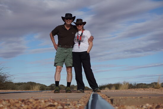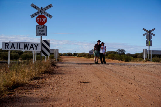 Wir kreuzen wieder einmal die neue Ghan und verpassen dabei um 5 Minuten den durchfahrenden Zug und können am Stuart Hwy nur mehr ein Foto mit Bush im Vordergrund schießen (siehe Bild unten). Ärgerlich.