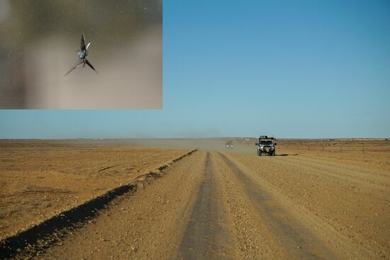 Ab William Creek ist diese Strecke echt stark frequentiert, es kommen uns auf diesen 400 km mindestens 20 bis 25 Fahrzeuge entgegen. Leider haben wir da dann auch unseren ersten "Pecker" (Macke) in der noch makellosen Windschutzscheibe bekommen.