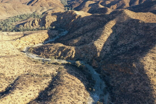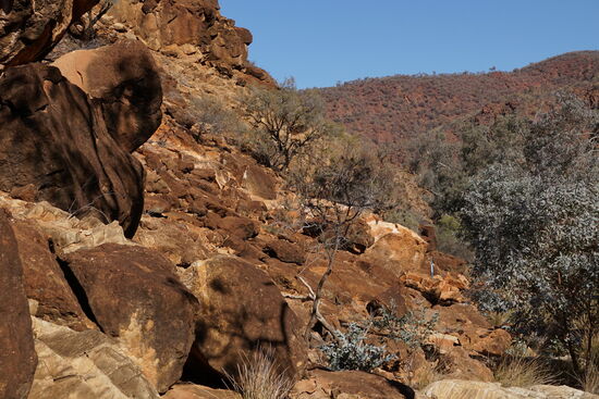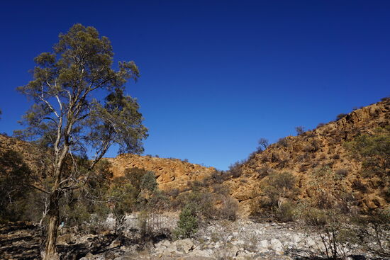 Wir sind hier mitten im Gammon Range NP in den Flinders Ranges auf einem Parkplatz, von dem man den Wortupa Creek Richtung Grindell Hut entlang wandern kann und dabei, wenn man Zeit hat, um den Berg herum wieder zu Startpunkt kommt.