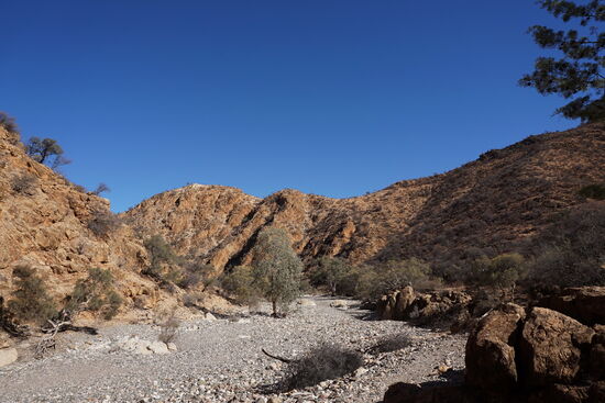 Nach unserem Frühstück machen wir unsere geplante Wanderung, die entlang der Schlucht (Gorge) und teilweise direkt im jetzt trockenen Flussbett führt.
