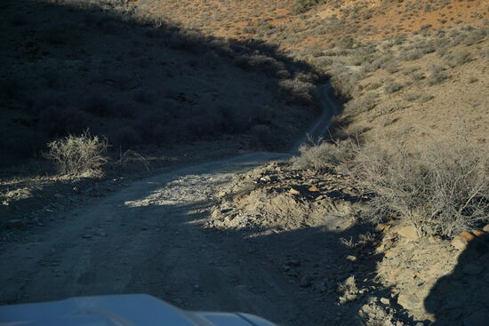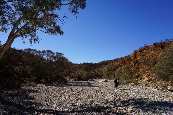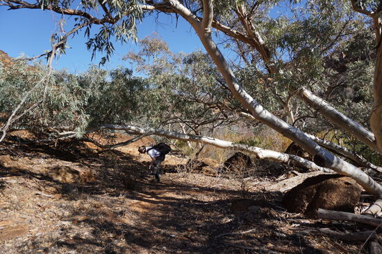 Eine Umrundung des Berges schaffen wir bei weitem nicht und gehen im trockenen Bett des Creeks zurück.