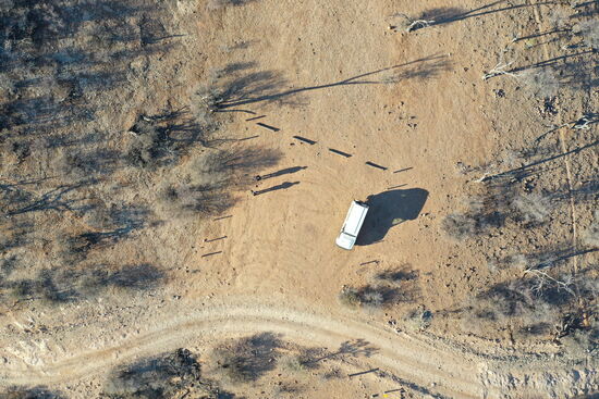 Auf diesem Weg liegen unzählige Kangaroo-Skelette herum und wir fragen uns warum, sind sie vergiftet worden?