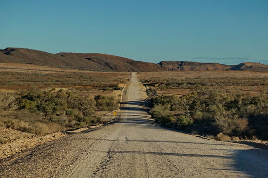 Als wir die Berge im Rücken haben, öffnet sich vor uns eine weite Ebene, atemberaubend schön. Wir biegen rechts in die Arkaroola Road (Piste) ein und fahren bis Balcanoona, wo sich das NP Headquarter befindet. Der Vulkathunha - Gammon Ranges NP wird von der Adnyamathanha Aboriginal Community verwaltet. Wir wollen uns dort noch nach den Pistenverhältnissen weiter Richtung Norden erkundigen und ein netter Aborigine beim Office gibt uns bereitwillig Auskunft.