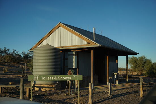 In diesem Miniort gibt es für Besucher auch zwei Toiletten und zwei Duschen, liebevoll hergerichtet. Wir hätten dort gratis eine Dusche nehmen können aber weil die Sonne jetzt doch schon tief steht und in dem Ort kein Campingplatz angeboten wird, fahren wir weiter, um heute wieder die vierte Nacht in Serie im Bush zu übernachten. Diesmal haben wir im Bushcampen echt schon einen Rekord erreicht.