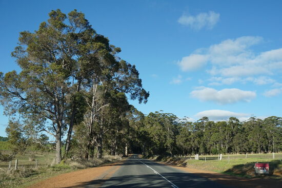 Anschließend füllen wir beim Coles noch unsere Essens- und Getränkereserven auf (ja hier hat der Supermarkt auch am Sonntag geöffnet und es sind durchaus nicht wenige Leute einkaufen) und füllen auch erstmals unsere beiden 90-Liter Dieseltanks voll, was man hat, das hat man. Weil wir vorher beim Coles einkaufen waren, haben wir beim Tanken satte 3 Dollar 40 Cent gespart. Fahren weiter Richtung Pemberton, um den nächsten ausgesuchten Campingplatz im Shannon NP zu erreichen. Auf dem Weg dorthin (jetzt waren wir doch schon einige Male in Australien) hat Robert endlich seinen Weg gefunden (siehe die beiden folgenden Bilder).