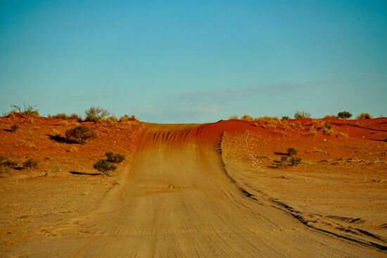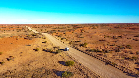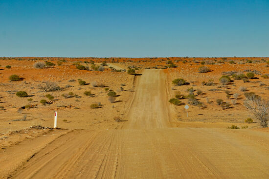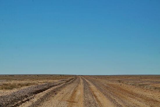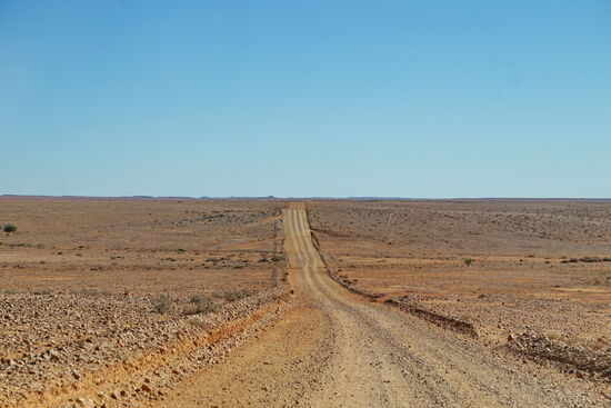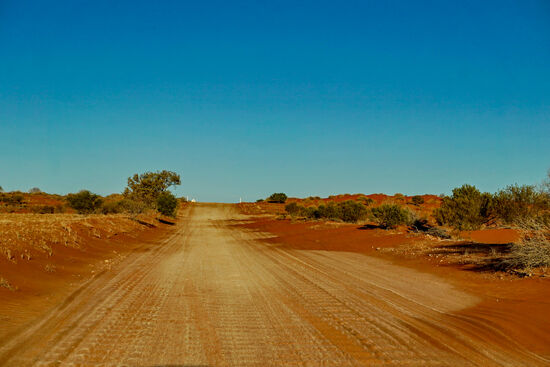 Wir zweigen vom Strzelecki Track (Bild rechts) nach Merty Merty ab. Hier geht es nach Osten auf die Riecks Road und weiter bis zum Cameron Corner.