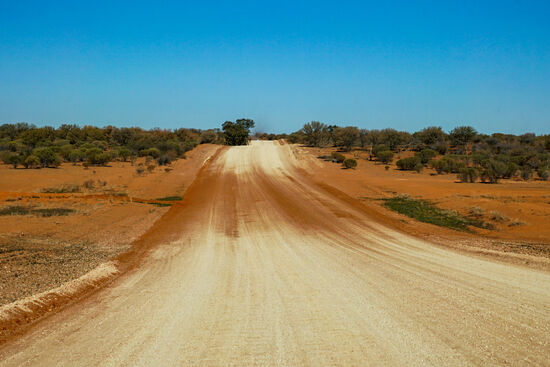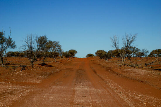 Wir nehmen aber nach ca. 20 km eine Abzweigung nach rechts, die uns wieder auf den geplanten südöstlichen Weg nach Tibooburra münden lässt. Dieser Weg ist einspurig, ca. 15km lang, beeindruckend schön (rot) und wir begegnen dort niemandem.