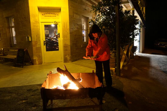Im nahegelegen Hotel und Pub genehmigen wir uns eine Pizza mit offenem XXXX Bier.