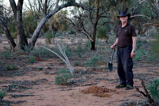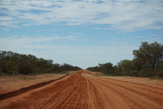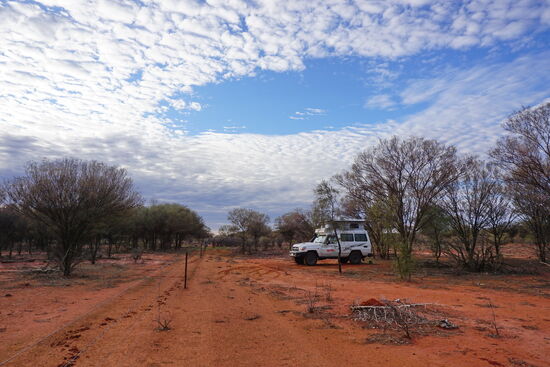Nachdem wir wieder einmal alles abfahrbereit gemacht haben, geht es weiter nach Wanaaring, ein seltsamer Ort, wo kurz vor der Ortseinfahrt ein gehäuteter Dingo (?) kopfüber vom Baum herunterhängt, hat schon etwas mitgenommen ausgesehen. Sehr makaber, nur schnell durch diesen Ort durch und ein paar Kilometer nach diesem Ort hängt tatsächlich wieder etwas von einem Baum herunter, dieses Tier war jetzt eindeutig als kopfüber aufgehängter Dingo zu erkennen. Nur schnell das Weite suchen.