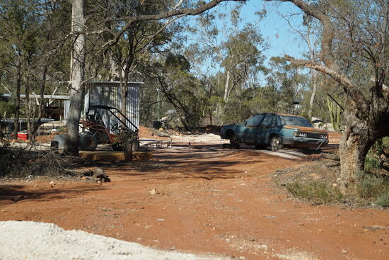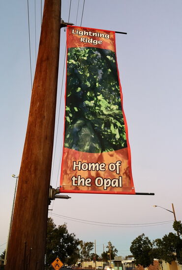 Er verschwindet wieder, taucht aber wieder auf und wir gehen mit ihm zu seinem Auto vor dem Pub. Er zeigt uns ein paar Stücke und nennt uns Beträge im mittleren Tausenderbereich, wir lehnen dankend ab und kurven nur noch ein bisschen in diesem Ort mit dem seltsamen Flair herum, bevor wir nach Lightning Ridge weiter fahren.