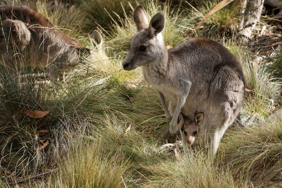 Außerdem haben wir hier aus nächster Nähe zwei Kangaroos beobachten können. Das eine, eine Kangaroo-Mama hat ein süßes kleines Joey im Beutel, das auch immer wieder den Kopf herausstreckt, so herzig.