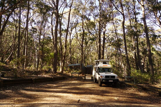Wir warten ca. 20 Minuten, ob das vielleicht nur der Ranger bei einer letzten Kontrollfahrt war und wieder ins Tal fährt, es kommt aber niemand zurück. Zuerst überlegen wir, doch nachzuschauen und wenn jemand dort ist, fahren wir halt wieder. Dann entschließen wir uns, doch einen anderen Campingplatz (Bark Hut) anzupeilen, der einige Kilometer wieder Richtung Tal, auch mit Dusche und WC, beschrieben ist.