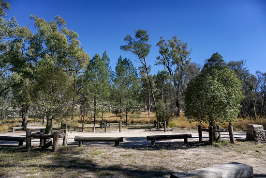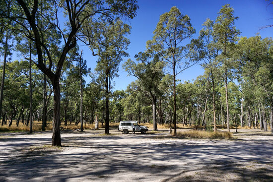Wir sind wieder mal die Einzigen hier in der Nogoa River camping area in der Salvator Rosa Section, aber das wussten wir schon bei der Buchung, von 40 möglichen Stellplätzen waren 40 frei!