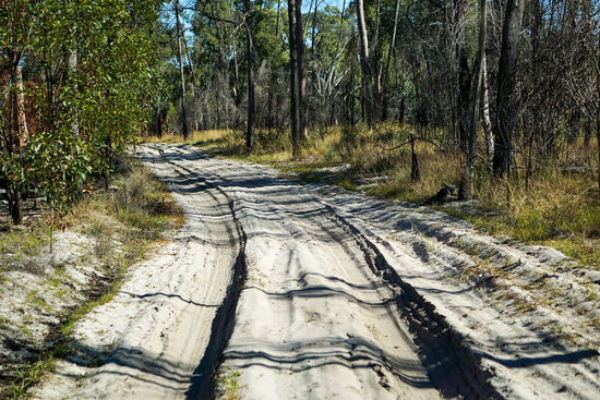 Der Weg ist sehr sandig, teilweise recht tiefer Sand, erinnert uns ein bisschen an Fraser Island.