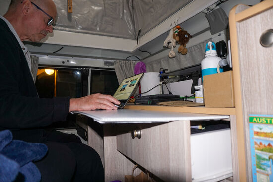 Bunnings vorbei. Wir haben beschlossen, unseren Trailfinder noch etwas zu pimpen. Uns fehlt noch ein bequemer Schreib- und Esstisch. Wir finden passendes Zubehör und bauen uns um 12 australische Dollar, das sind ca. acht Euro einen supercoolen abnehmbaren Tisch. Wir sind so stolz auf unsere Errungenschaft, dass wir sogar überlegen ein Patent dafür anzumelden und dem Autovermieter dieses gegen Entgelt zu überlassen.