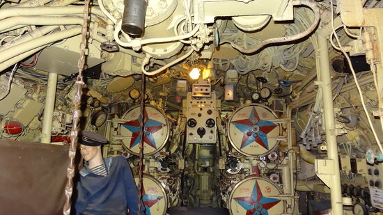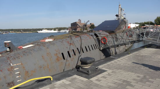 Nach dem Frühstück erst einmal unser Auto betankt, dann ging es weiter an die Nordspitze der Insel, nach Peenemünde. Auf dem noch ziemlich leeren Parkplatz geparkt und zum Hafen gegangen. Imposant, das sofort ins Auge stechende U-Boot U-461, 86 m lang, Anfang der 60er Jahre gebaut, eines der grössten seiner Art, mit 4 Marschflugkörpern und Torpedos bestückt, war es gegen US-Flugzeugträger im Nordatlantik im Einsatz. 1991 ausser Dienst gestellt, wurde es 1998 mit Schleppern nach Peenemünde gebracht. Eintritt 7€, 1,50€ Aufpreis, wenn man fotografieren oder filmen möchte.
