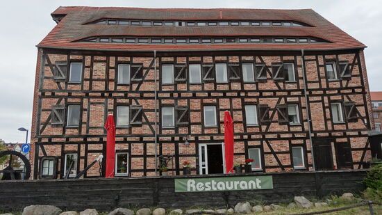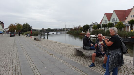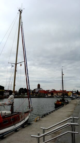 Im kleinen Hafen gabs ein Fischbrötchen, leider keine sehenswerten Schiffe zu sehen. Markant der restaurierte Getreidespeicher, heute als Hotel und Restaurant genutzt.