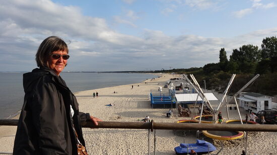 Die Seebrücke, 1891-1893 aus Holz gebaut, damals 500m lang, 1995 entstand die neue Brücke aus Metall und Beton. Sie ist heute mit 508 Metern die längste ihrer Art in Kontinentaleuropa.
