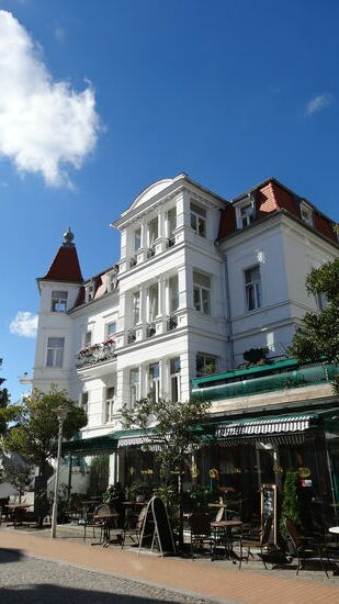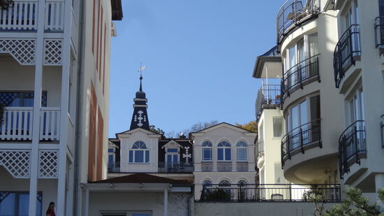 Kurzer Stopp an der "Villa Irmgard", eine der wenigen Villen, die noch so anzutreffen sind, wie in 1906 im neoklassistischen Stil erbaut, nun ein Museum, MO und MI geschlossen, sonst ab 12 Uhr geöffnet, um dort auch die originale Inneneinrichtung aus dieser Epoche zu besichtigen. Heute am Montag für uns nur von aussen zu betrachten. Der berühmteste Bewohner war Maxim Gorki, der von Mai-September 1922 mit seinen Kindern dort logierte, um sich hier an der Ostsee von seiner TBC-Erkrankung zu erholen.