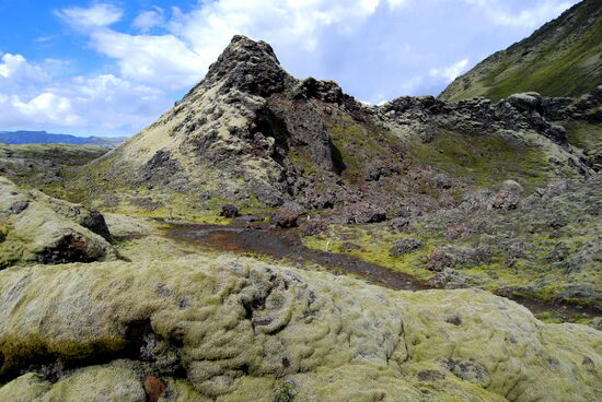 1783-84 fand einer der größten Vulkanausbrüche statt. Es öffnete sich eine 25 km lange Spalte mit über 100 Vulkanschloten. Die Lavamenge, die sich daraus ergoß, soll die größte seit Beginn der Geschichtsschreibung sein. Mehr als ¼ der isländischen Bevölkerung kam dabei um. Schlimmer als die Lava waren aber die giftigen Gase und die Asche. Da die Asche bis nach Mitteleuropa geweht wurde, führte sie hier zu Hungersnöten. Man geht davon aus, daß dadurch auch die französische Revolution ausgelöst wurde. Soviel zur Geschichte.