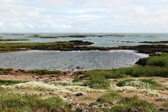 An einem weiteren kleinen Parkplatz fiel uns ein Schild auf. Es wies darauf hin, daß Lava vom größten Ausbruch nach der Eiszeit im Jahr 6700 v.u.Z. vom Hochland bis hierher geflossen und erst hier vom abkühlenden Meer gebremst worden war.