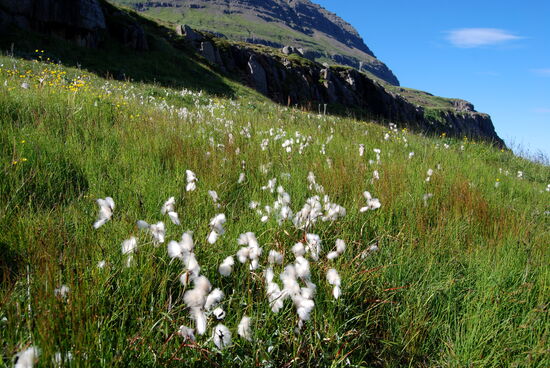 Da das Wetter sehr schön war, fuhren wir noch zum Leuchtturm hinaus und machten eine kleine Wanderung an der Küste entlang. Die Wiesen waren hier voll mit blühenden Kräutern und sogar Orchideen. Zurück am Wowa gab es dann erst einmal Kaffee. Man merkte, daß es Wochenende war. Als wir mittags losfuhren war der Platz noch leer, nun war er fast voll mit Isländern.