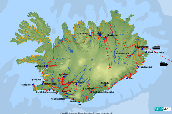 Über die 32, die 30 durch Flúðir und die 359 erreichten wir die 35. In der ganzen Gegend wurde ziemlich viel Gemüse angebaut, nicht nur in Gewächshäusern. Auch aufgeforstet wurde eine Menge.