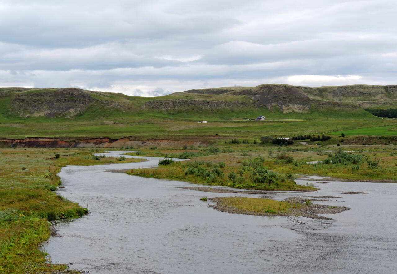 Nun kamen wir schneller voran. Trotzdem war Þjoðveldisbærinn, die Rekonstruktion des Hofes Stöng aus der Landnahmezeit, der ca. 7 km nördlich liegt, schon geschlossen. Aber auch von außen war es eine interessante Anlage. Stöng war einer von 20 Höfen, die 1104 bei einem Ausbruch der Hekla von Asche verschüttet worden waren.