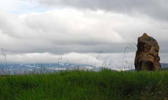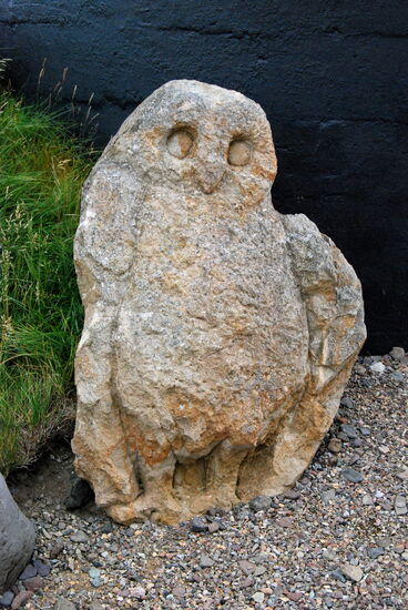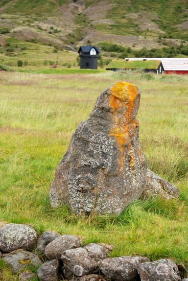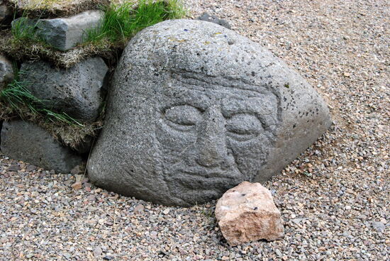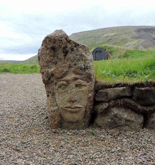 Wir hatten im Fernsehen von dem Künstler Páll Guðmundsson gesehen, der Steinharfen, eigentlich eher Steinxylophone, baut und spielt. Außerdem sammelt er Steine, in denen er Gesichter und Figuren sieht und arbeitet sie dann heraus. Die behauenen Steine liegen und stehen bei ihm im weitläufigen Gelände, und man kann sie sich ansehen. Sein Atelier war leider geschlossen, da haben wir nur durch die Fenster geluschert.
