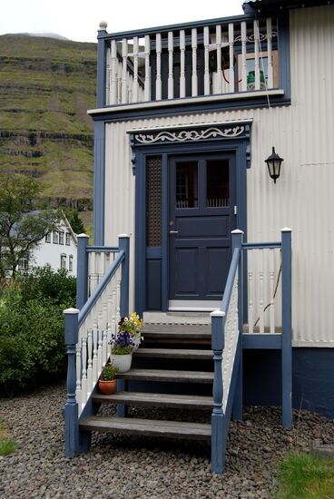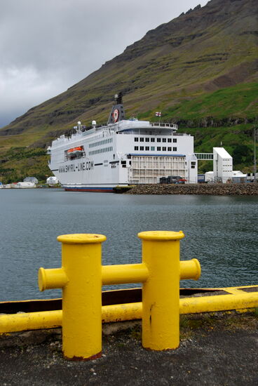 Dies war nun unser letzter Tag auf Ísland. Die Fähre sollte ja erst am Abend abfahren. So hatten wir noch Zeit, uns in Seyðisfjörður umzusehen. Es gibt hier ein Technikmuseum, das wir uns ansehen wollten. So wanderten wir zuerst an der blauen Kirche vorbei in Richtung Fähranleger. An dem hübschen Haus mit dem blauen Dach vermißten wir das Schild des schwedischen Konsulats. Im Haus schräg gegenüber war u.a. der Zoll untergebracht. Hier gaben wir unsere “Tax free”-Formulare ab. Dann waren wir am Wasser und machten ein paar schöne Fotos der Fähre, teilweise mit gelben Pollern im Vordergrund. Wir gingen weiter die Straße an der Fähre vorbei bis zur Hafnargata, wo das Museum lag. Hier hing nun unser Schild des schwedischen Konsulats.