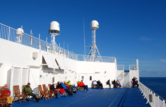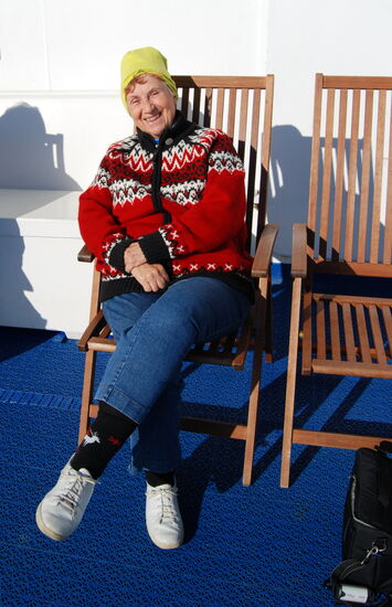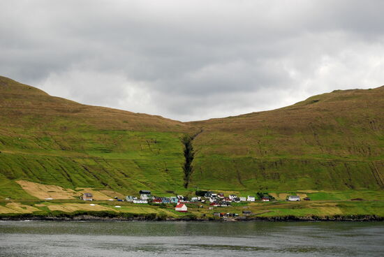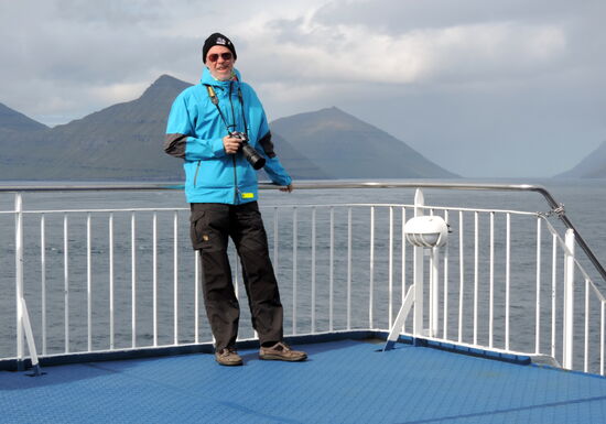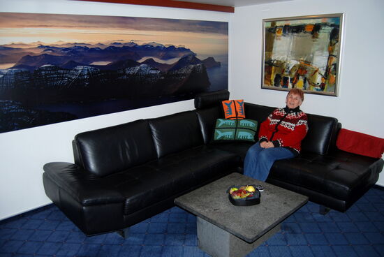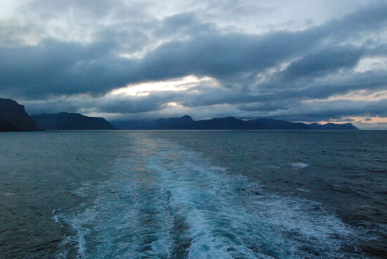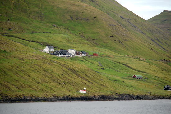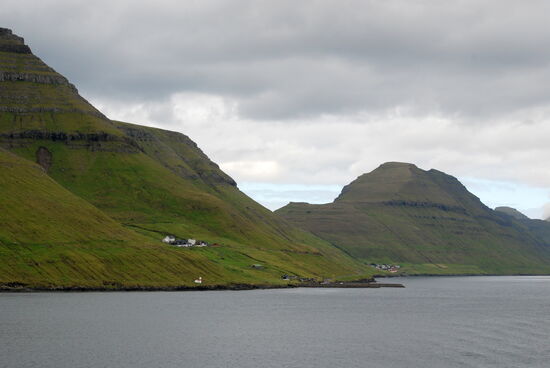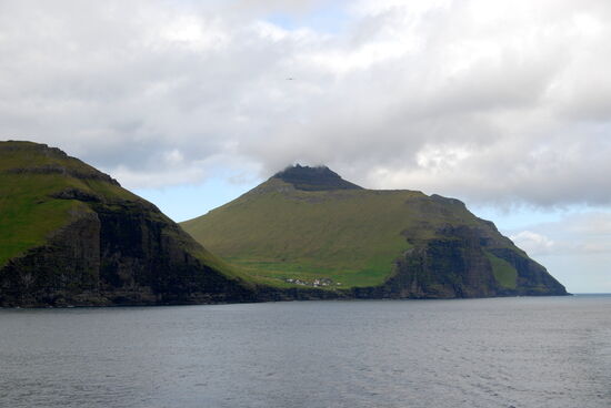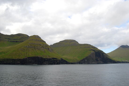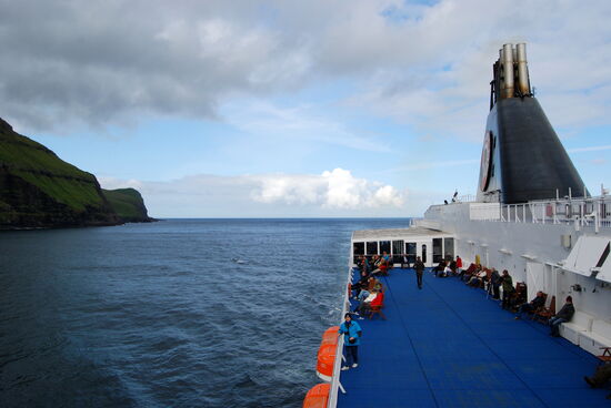 Wir hatten gut geschlafen. Als wir aufwachten, war draußen eine leichte Dünung. Wir frühstückten in aller Ruhe wie immer unser Müsli. Als wir uns den Färöarna näherten, gingen wir an Deck. Das Wetter war gut, Sonne mit Wolken. Wir setzten uns eine Weile auf die Deckstühle und ließen die Inselwelt an uns vorbeiziehen. Immer wieder lagen kleine Dörfer an den Felskanten. Als wir vorübergehend wieder in offneres Gewässer einschwenkten, gingen wir erst noch einmal in die Kabine und machten Kafferast.