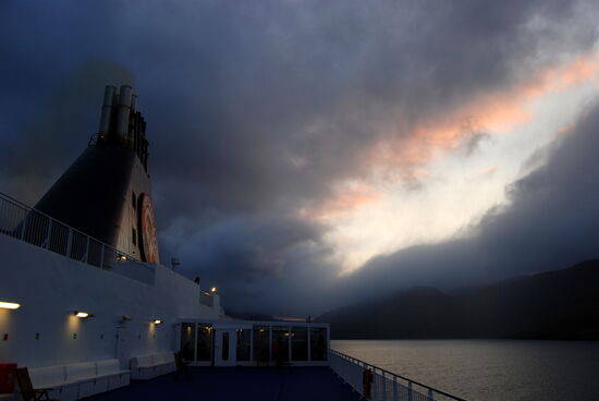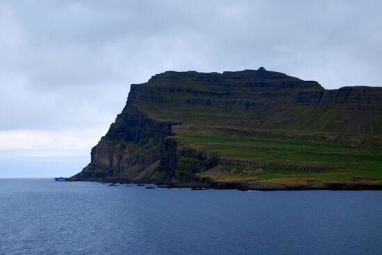 Kurz vor 20 Uhr liefen wir dann aus. Wir gingen an Deck und sahen die meiste Zeit vom Heck aus zurück auf Seyðisfjörður und den gleichnamigen Fjord. Es wurde langsam dämmerig. Wir blieben an Deck, bis wir “unseren” Leuchtturm Dalatangi, den wir 2016 besucht hatten, passiert hatten. Dann machten wir es uns in unserer Suite gemütlich.