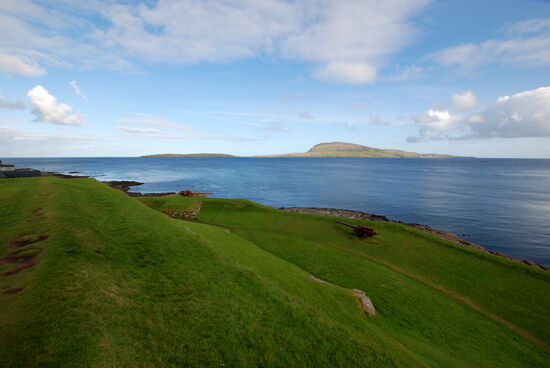 Als wir morgens aufwachten, fuhren wir gerade an den Shetlandinseln vorbei. Es war herrlich blauer Himmel mit wenigen kleinen Wolken über den Inseln. An Land sahen wir u.a. einige Ruinen. Ob sie wohl noch aus der Vikingarzeit stammen?