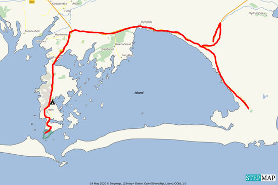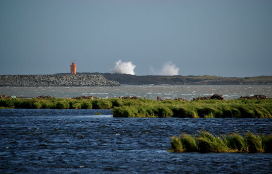 Wir sahen uns den Ort an und waren in der Info, um eine genauere Wanderkarte der Gletscherregion zu kaufen. Dort trafen wir zwei junge Deutsche, denen wir viele Tips geben konnten. Wie viele junge Menschen, wollten sie am liebsten alles auf einmal sehen, und das in nur 10 Tagen. Na ja, die Pisten werden sie schon eines Besseren belehren. Wir kauften unsere Karte, sahen noch bei einer Steineausstellung rein und in eine maritime Ausstellung. Inzwischen hatten sich die Wolken verzogen, die Sonne schien. Dafür war es sehr stürmisch geworden. Vom Hafen fuhren wir auf die Halbinsel Ósland, um Vögel zu beobachten und aufs Meer hinauszusehen. All zu lange hielt man es aber nicht aus. Der Sturm war inzwischen sehr stark. Er bescherte uns aber schöne Bilder von der starken Brandung. Aus unserer Sicht war die Gischt manchmal so hoch wie der Leuchtturm. Nachdem wir uns satt gesehen hatten, fuhren wir noch einkaufen und dann zurück zum Wowa um Kaffe zu trinken. Anschließend fuhren wir noch einmal los. Wir wollten zum Leuchtturm Stokksnes. Als der Leuchtturm schon zu sehen war, kam auf einmal ein Schlagbaum. Um weiter zu fahren sollte man pro Person 800 ISK entsprechend 6,50 Euro bezahlen. Das ist Abzocke, ohne uns. So drehten wir um und fuhren statt dessen durch den Tunnel und danach auf der alten Straße hoch auf den Berg. Von hier aus hatten wir dann doch noch einen schönen Blick aufs Meer. Rainer hatte seinen Windmesser mit. Hier oben blies der Wind mit 21 m/s. Morgen wollen wir an eine Gletscherzunge fahren, hoffentlich läßt der Sturm nach. Den Abend verbrachten wir dann im gemütlich warmen Wohnwagen mit schreiben, Bilder überspielen und lesen.