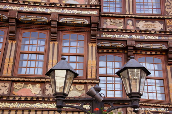 Startpunkt ist der wunderschöne Marktplatz, der mit allen angrenzenden Gebäuden im 2. Weltkrieg komplett zerstört wurde. Wie in vielen anderen Städten ging es auch in Hildesheim zunächst einmal darum, alles schnell wieder aufzubauen. Kaum zu glauben, dass erst 1989 die alten Gebäude wieder rekonstruiert und aufgebaut wurden, nachdem die Gebäude aus den 1950er Jahren abgerissen wurden. Heute löst der Platz mit seinem Ensemble einen Wow-Effekt bei allen Besuchern aus. Marktbrunnen, Rathaus, Tempelhaus, vor allem aber das Bäckeramtshaus und das Knochenhauer-Amtshaus begeistern uns.