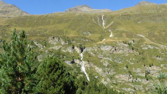 Gutgelaunt fuhren wir bei strahlendem Herbstwetter bis zum Ende des Ötztales. Dort in Obergurgl erwanderten wir zum Auftakt einen Zirbenrundweg. Der einzigartige, würzige Duft der Zirbenbäume begleitet uns angenehm die ganze Zeit. Das letzte Stück bewältigten wir dann nicht am markierten Weg, sondern dirisima über einen Viehsteig sehr steil hinunter. - Die Knie waren darüber nicht so besonders erfreut!