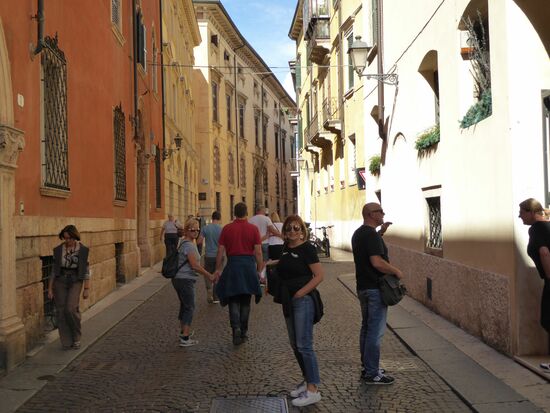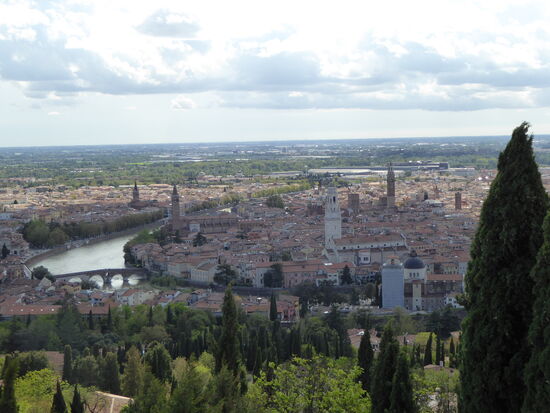 Freitagmorgen fuhren wir 4 vom Gardasee nach Verona, wo wir uns mit den nachkommende 4 treffen wollten. Da wir zu früh dort waren, wollten wir schnell einen Blick auf unser Verona-Domizil werfen. Schön brav folgten wir dem Navi dem Berg hinauf und wunderten uns über den engen, nostalgischen mit Steinen gepflasterten Weg. Giuseppe, der Besitzer der Villa, bekam einen Lachanfall und erklärte uns, dass diese Straße von den Österreichern im 19.Jahrhundert gebaut wurde (Verona war dort unter österr. Herrschaft) und die Straße uns daher wohl angezogen hat. Wir sollten zukünftig mit dem Auto besser die neue Straße benützen.