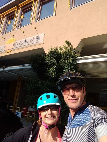 Unterwegs hatten wir noch ein Zimmer im Gasthof Lampersberger reserviert. Das war ein altes Gemäuer mit sehr herzlichen Wirtsleuten. Unser sehr schön renoviertes Zimmer war eine ehemalige Backstube. Das Essen schmeckte uns hier auch sehr gut und der Wirt spendierte danach ein Verdauerle - Grappa für mich und Obstler für Manni!