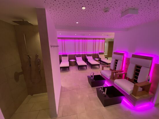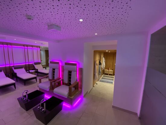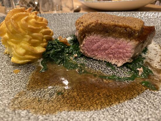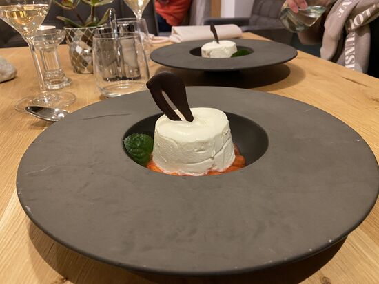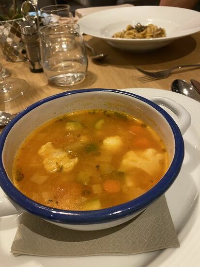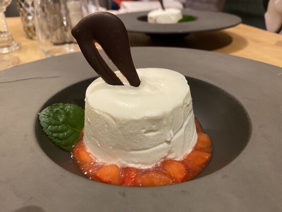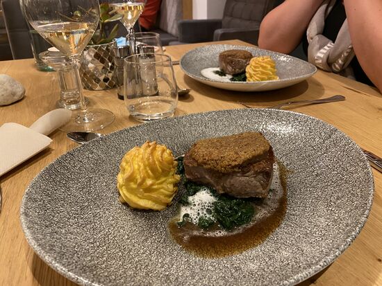 Das Menü am Abend war klasse. Zur Vorspeise gab es Salat vom Buffet, als zweiten Gang für Maren Nudeln mit Lammragout und für Andi eine italienische Gemüsesuppe. Zum Hauptgang Entrecôte und zum Nachtisch ein Joghurtmousse mit frischen Erdbeeren. Alles in allem sehr köstlich.