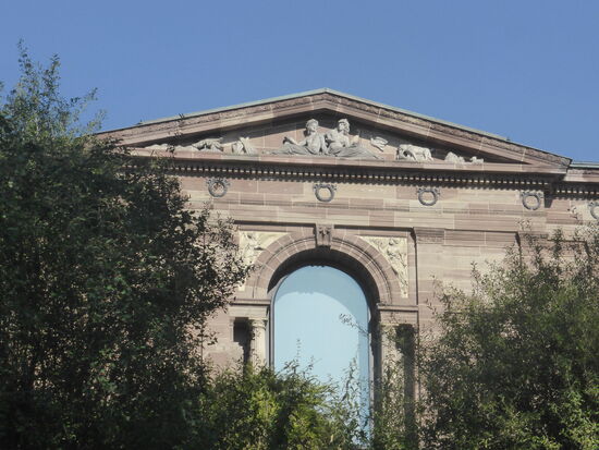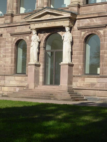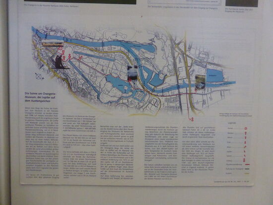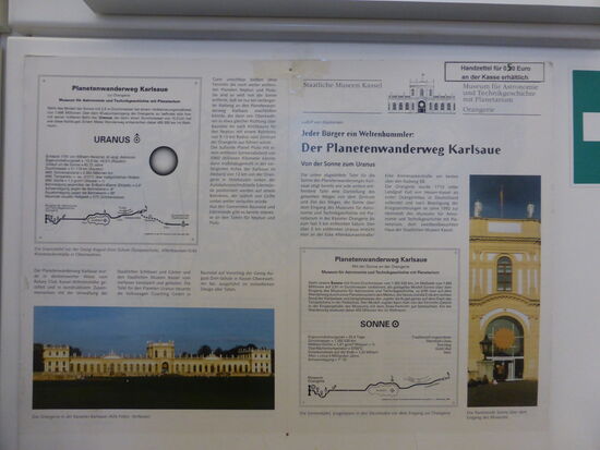 Über dem Haupteingang strahlt eine große Sonne. Sie ist Ausgangspunkt für den Planetenwanderweg durch die Karlsaue, auf dem man im Maßstab 1:495 Mio von der Sonne aus die einzelnen Planeten erwandern kann.